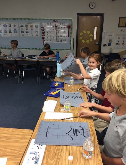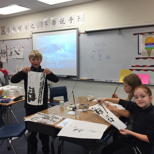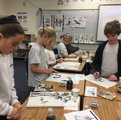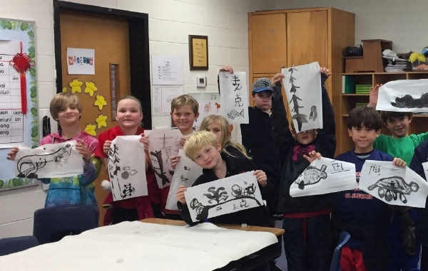 值得一提的是,在小学部教中国书画,是波特高德小学校长朱莉艾利森女士一手促成的。朱莉艾利森女士是一位很有远见卓识的教育家。她很欣赏中国文化的优雅,不仅一再鼓励中文老师以教授书法国画的方式来传播中国文化,还在上中文课时亲自来帮助孩子们添墨洗笔。她更是希望中文老师每个学期给每个年级都上两堂书法国画课,并以此作为波特高德小学孔子课堂的特色之一。推广中国的文化艺术是中文教师的一项使命,相信中国优秀的民族文化会在中美教育工作者的共同努力下继续在全世界发扬光大。